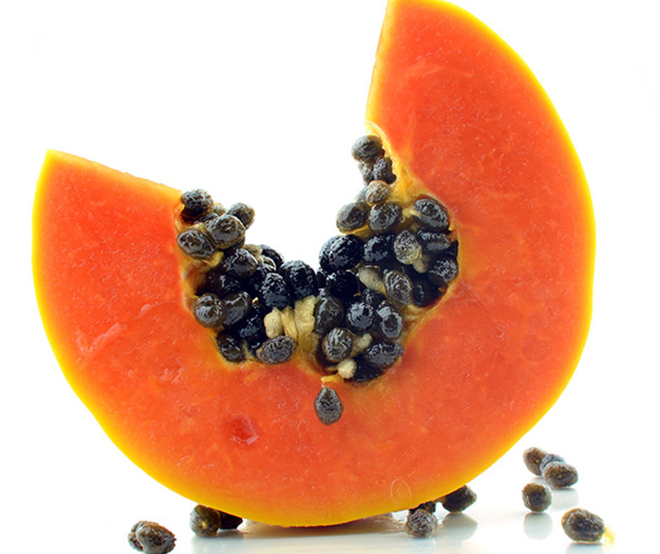 Caribbean Red papayas are BIG fruit. You’d think it’d take a lot of time and effort to get to the good stuff (what’s inside the peel). Here’s the best shortcut, I’ve found.